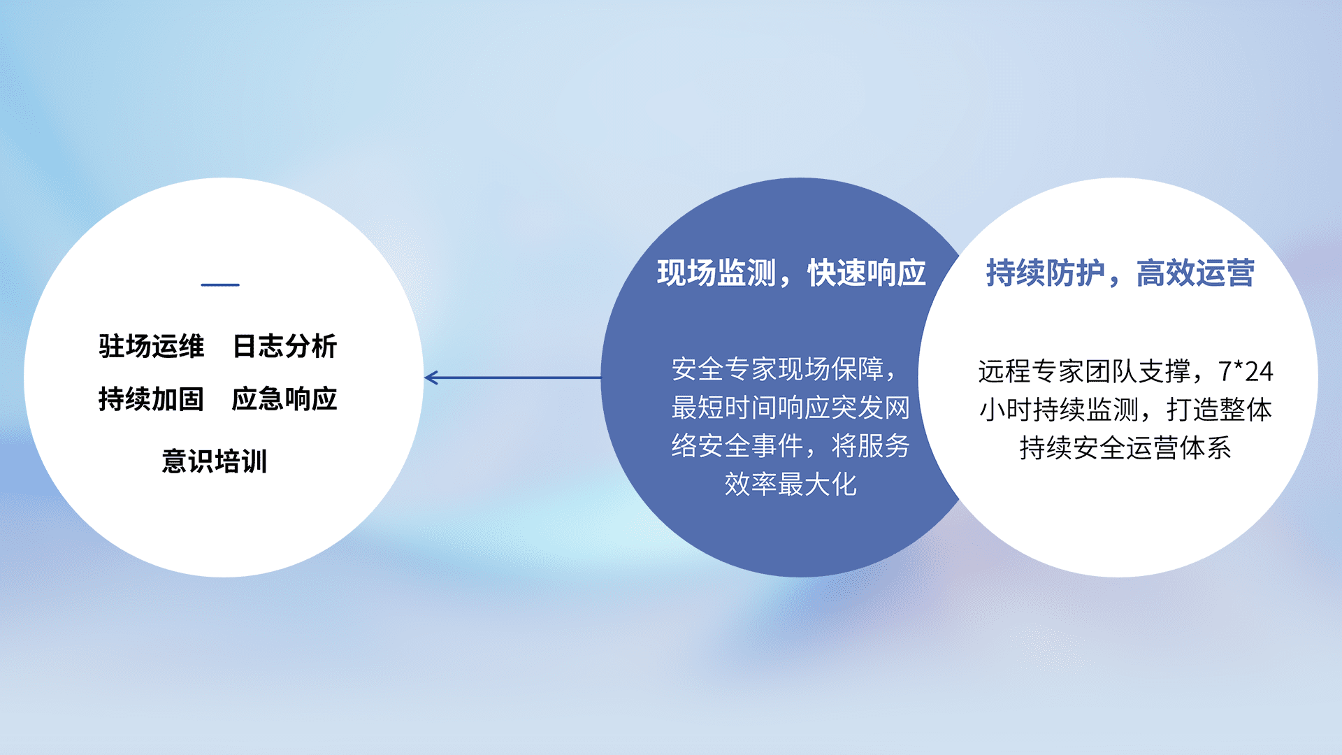 7X24小时持续监测安全事件,保持安全策略有效性,降低资产脆弱性风险,,,精准拦截黑客攻击,,减少被黑客利用的机会,,第一时间遏制,,,降低损失。。。